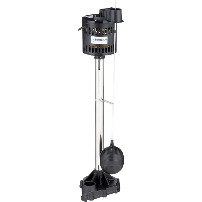 The sump pump by Burcam(TM) will help protect your home from water damages. The non-submersible pump is equipped with a cast iron base as replacement of a pedestal or submersible pump. It presents a maximum discharge head of 15′ (4.5 m) and a maximum flow of 3000 US gallon per hour (11350 litres per hour). The device is recommended in a permanent installation to automatically drain sump in basements. It is easy to install into a sump as small as 16” diameter by 18” depth. Its cast iron base provides accrued strength and durability. It also features a discharge filetage de décharge de 1 1/2″ 1/3 HP motor, 115 V with bearings at both ends an operation automatic start and stop using the float and switch. Its grounded power cable measures 8′ (2.4 m) and is thermal and overload protected.