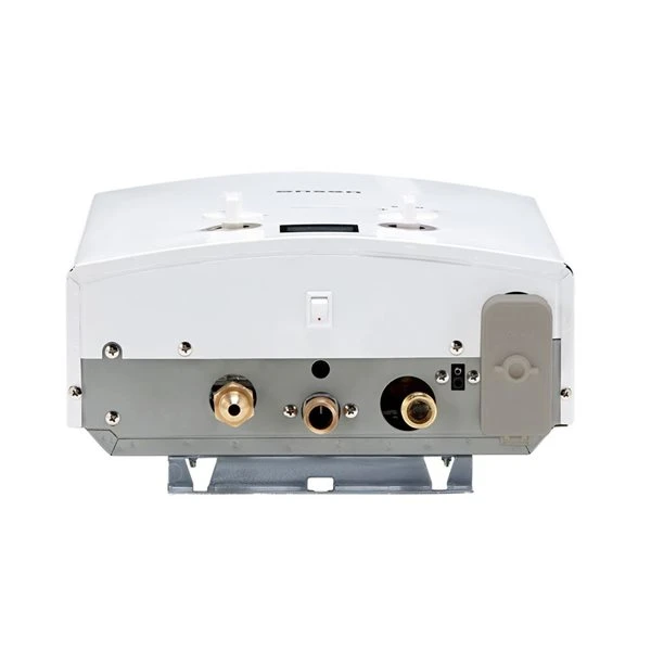 - Digital screen displaying outgoing water temperature and battery life